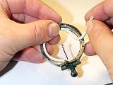 Before you insert the second gasket, see that the diaphragm is not touching the sides of the reproducer. You may need to gently press the needle bar a little to center it. Lay the second gasket in place, this time placing the seam, where the two ends meet, at the top (opposite of the first one). |
