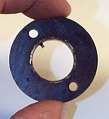A light coating of Vaseline between the reproducer body and the new rubber flange will help insure a nice air-tight fit. When you screw the flange back on, note the location of the small pin near one of the screw holes. This is used for locking the reproducer in place on the tonearm, and should be in the "One O'clock" position when fastened back on the reproducer. |